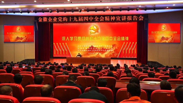 12月4日,金徽企業(yè)舉辦了學(xué)習(xí)貫徹黨的十九屆四中全會(huì)精神宣講報(bào)告會(huì),中共徽縣委書記王強(qiáng)作了專題宣講報(bào)告。包括金徽礦業(yè)股份有限公司、金徽酒股份有限公司、金徽現(xiàn)代農(nóng)業(yè)公司、金徽新科材料公司、金徽物業(yè)公司在內(nèi)的金徽企業(yè)黨員以及入黨積極分子400余人參加宣講會(huì)。