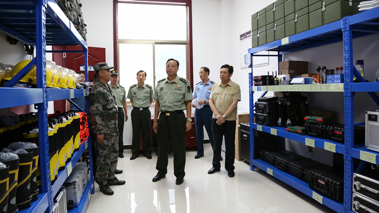 在金徽股份應(yīng)急救援指揮中心,王文清詳細(xì)查看了基干民兵“森林(草原)滅火排一班”的訓(xùn)練情況和民兵裝備室、器材庫(kù)建設(shè)工作,仔細(xì)了解企業(yè)編兵情況,并與正在訓(xùn)練的基干民兵一一握手慰問(wèn)。隨后,王文清一行到科技館、停機(jī)坪、尾礦庫(kù)、主平硐口等地,實(shí)地調(diào)研金徽股份企業(yè)文化、安全生產(chǎn)、工藝流程和綠色礦山建設(shè)情況。