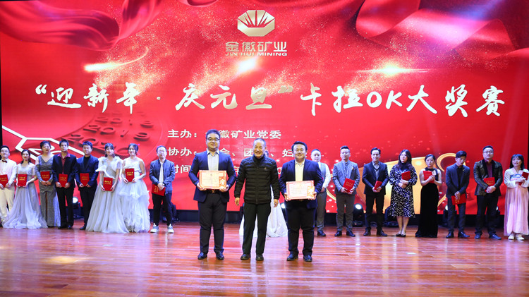隨后,金徽股份“迎新年·慶元旦”卡拉OK大獎(jiǎng)賽在氣勢(shì)磅礴的《一壺老酒》中拉開(kāi)了序幕,來(lái)自采礦生產(chǎn)一線和企業(yè)管理、行政后勤等部門的21位參賽選手帶來(lái)《父親的草原母親的河》《愛(ài)拼才會(huì)贏》《濤聲依舊》《精忠報(bào)國(guó)》《明天會(huì)更好》等歌曲,蕩氣回腸,余音繞梁,感染力和現(xiàn)場(chǎng)帶動(dòng)感極強(qiáng),讓觀眾們陶醉其中。選手們放聲高歌、深情演唱,使得整場(chǎng)比賽高潮迭起、精彩紛呈、掌聲不斷、氣氛熱烈。在專業(yè)評(píng)委老師的現(xiàn)場(chǎng)見(jiàn)證下,安全環(huán)保部張海燕演唱的歌曲《幸福來(lái)敲門》獲得了大賽特等獎(jiǎng),公司領(lǐng)導(dǎo)分別為參賽的21名選手頒發(fā)了特等獎(jiǎng)、一等獎(jiǎng),二等獎(jiǎng),三等獎(jiǎng)和優(yōu)秀獎(jiǎng)。