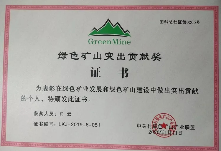 綠色礦山突出貢獻獎是經(jīng)科技部國家獎勵辦公室批準,受政府支持的面向綠色礦山建設(shè)一個新的獎項,也是我國專門針對綠色礦山建設(shè)設(shè)立的國家級獎項。