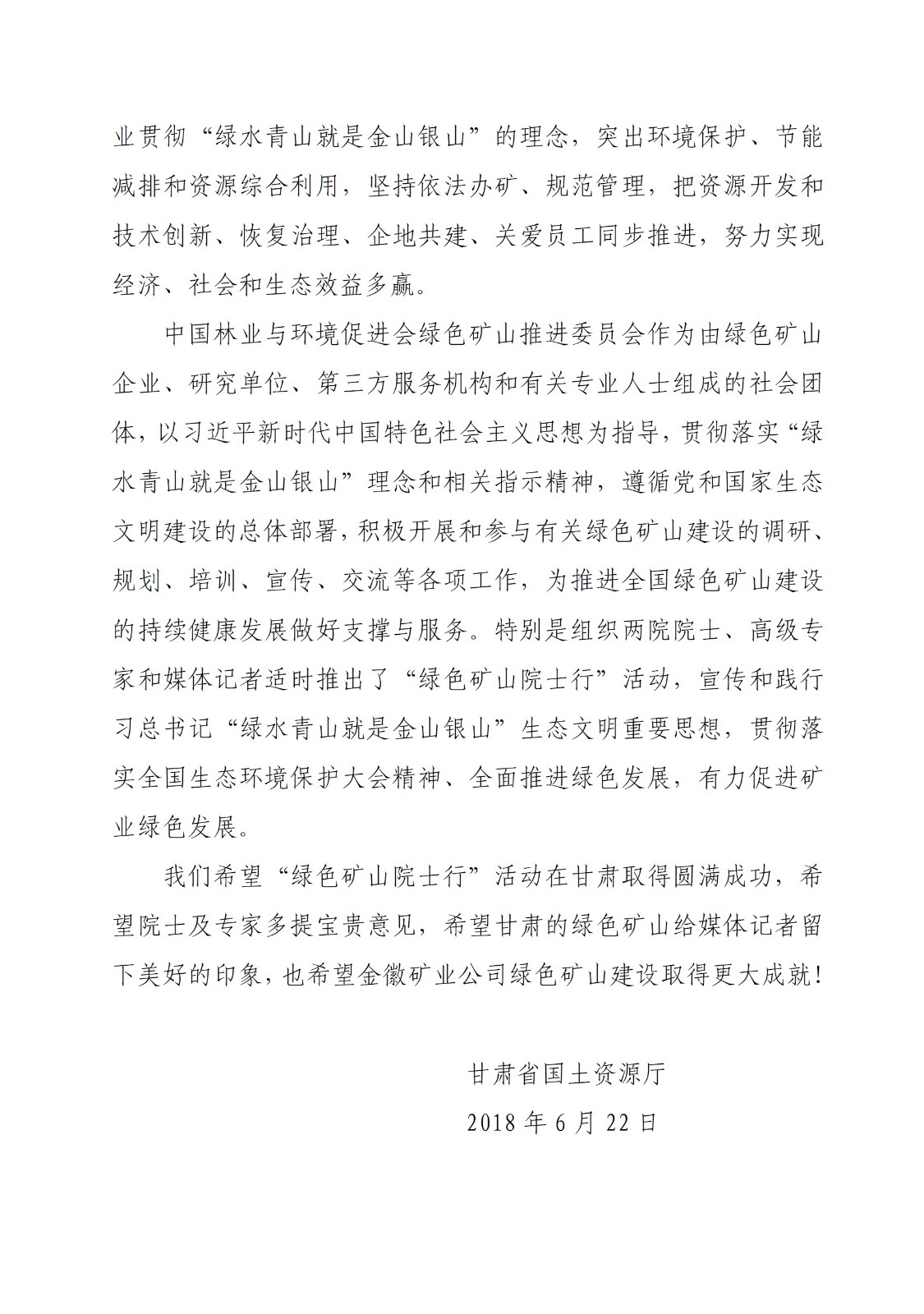 國(guó)土資源廳賀信